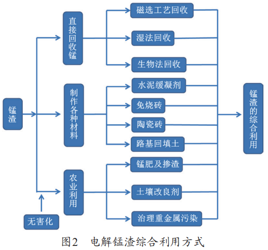 錳渣利用方式見圖2,包括從錳渣直接回收各種有價元素 以及利用電解錳渣制備各類工農業(yè)材料。